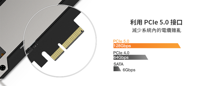 | • | 支援 PCIe 5.0 x4,資料傳輸速率最高可達 128Gbps |