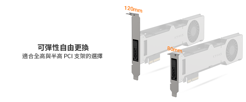 | • | 使用 1 個 PCIe 5.0 x4 介面,向下相容 PCIe 1.0/2.0/3.0/4.0/5.0 x4、x8、x16 插槽 |