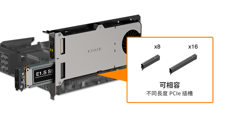 | • | 支援 2 顆 E1.S NVMe SSD,支援 9.5mm 厚度 |