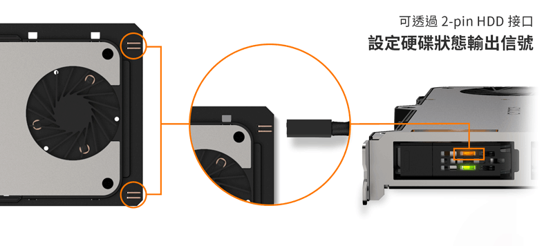 | • | 可選配 HDD 活動訊號輸入於機殼或 LED 面板,方便從外部監控硬碟狀態 |