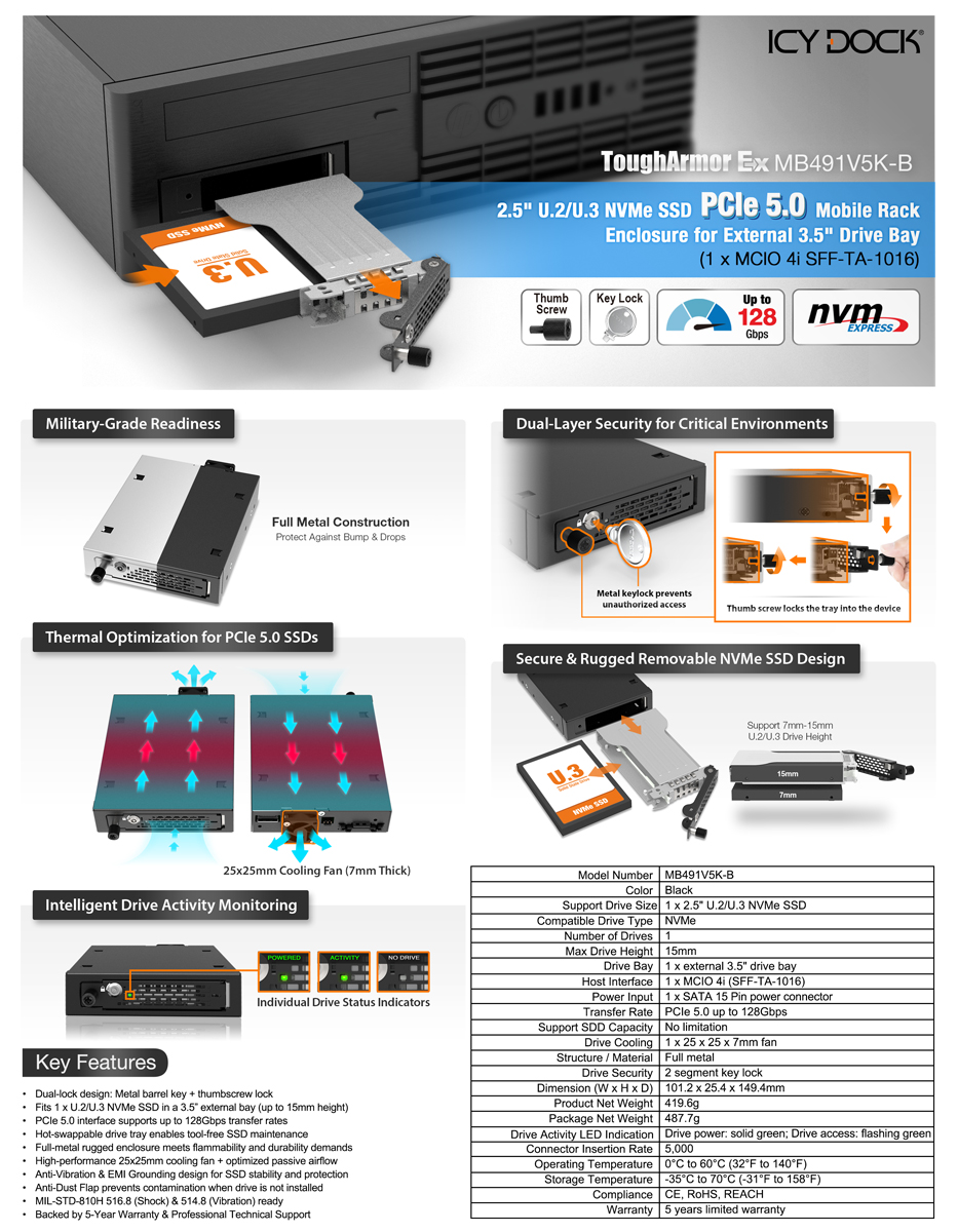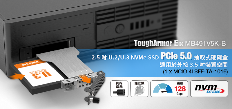 | • | 支援 PCIe 5.0 介面,傳輸速度高達 128Gbps |