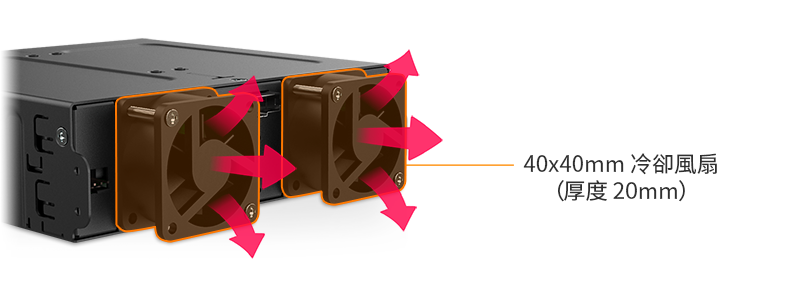 | • | 搭載雙 40x40x20mm 風扇,提供優異的主動式氣流散熱 |