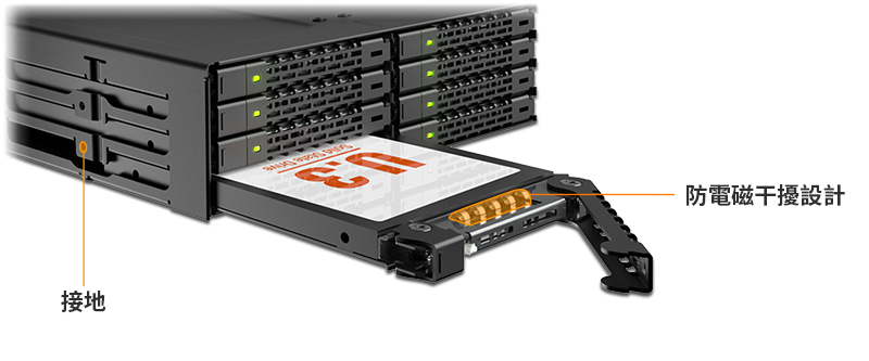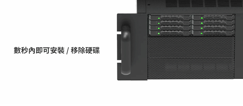 | • | 可抽取式硬碟托盤設計,方便快速維護 |