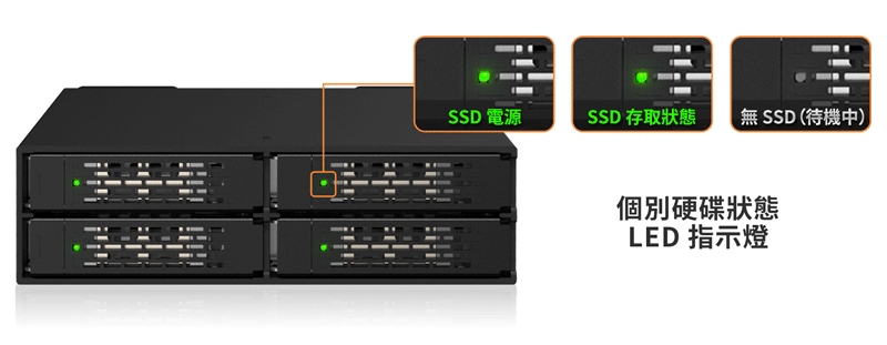 | 傳輸速率: | 每顆 SSD 最高可達 128Gbps(依 SSD 速度而定) |