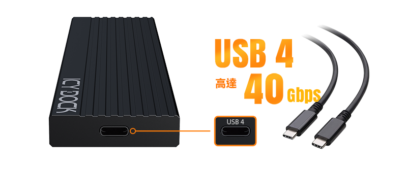 在 USB4 介面下可達 40Gbps 傳輸速度(視硬碟與主機規格而定)