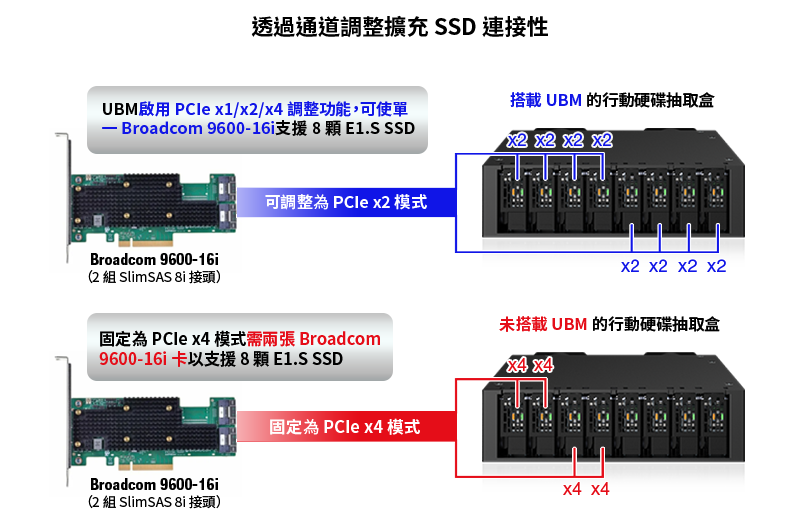 | • | 符合 UBM(SFF-TA-1005)背板管理標準 |