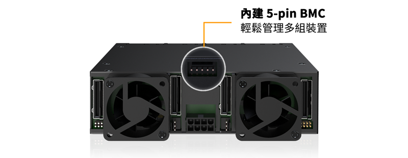 | • | BMC 5-pin 介面,可控制 SSD 電源與狀態 |