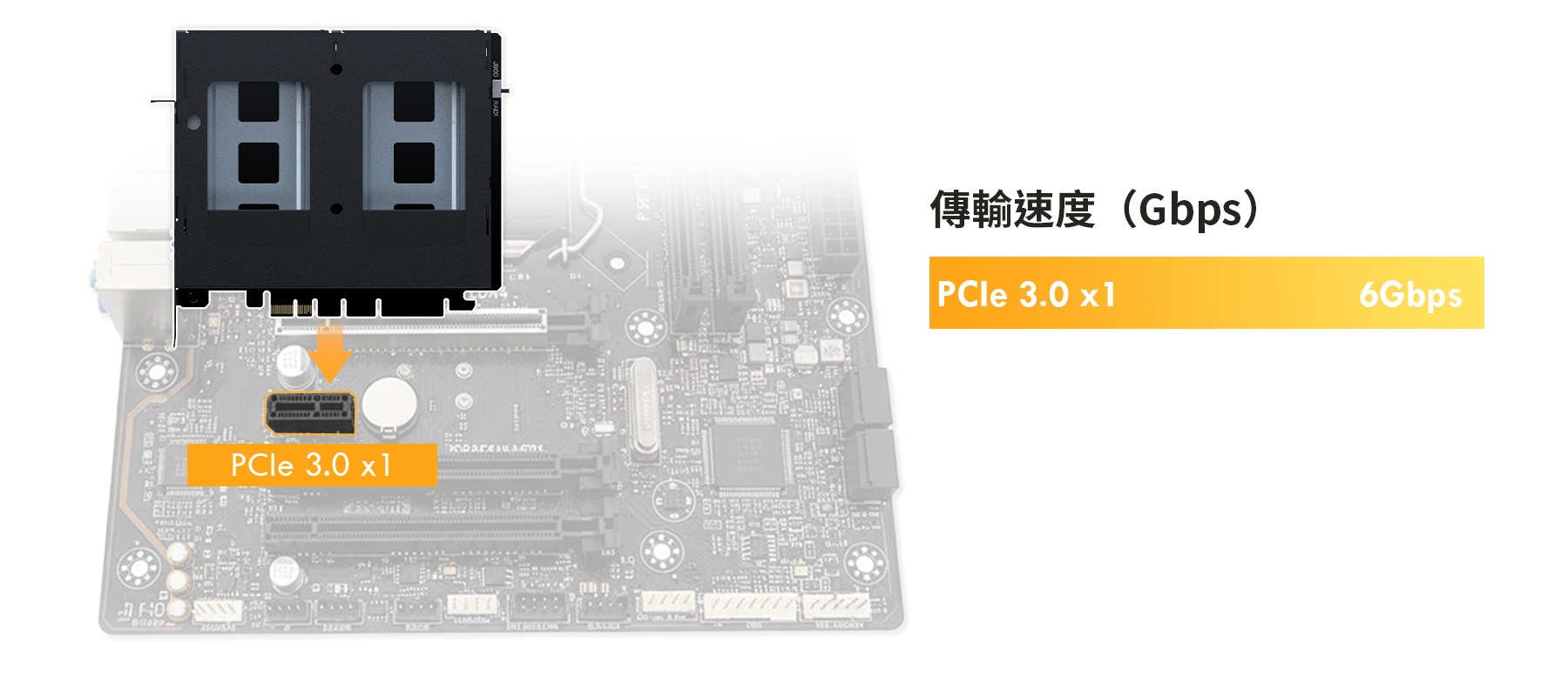 採用 PCIe 3.0 x1 介面,最高 6Gbps 傳輸速率