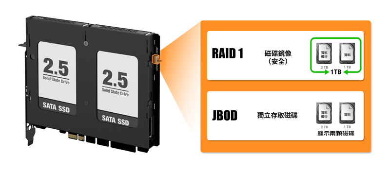 支援 RAID 1,提供關鍵任務環境所需的資料冗餘與可靠度