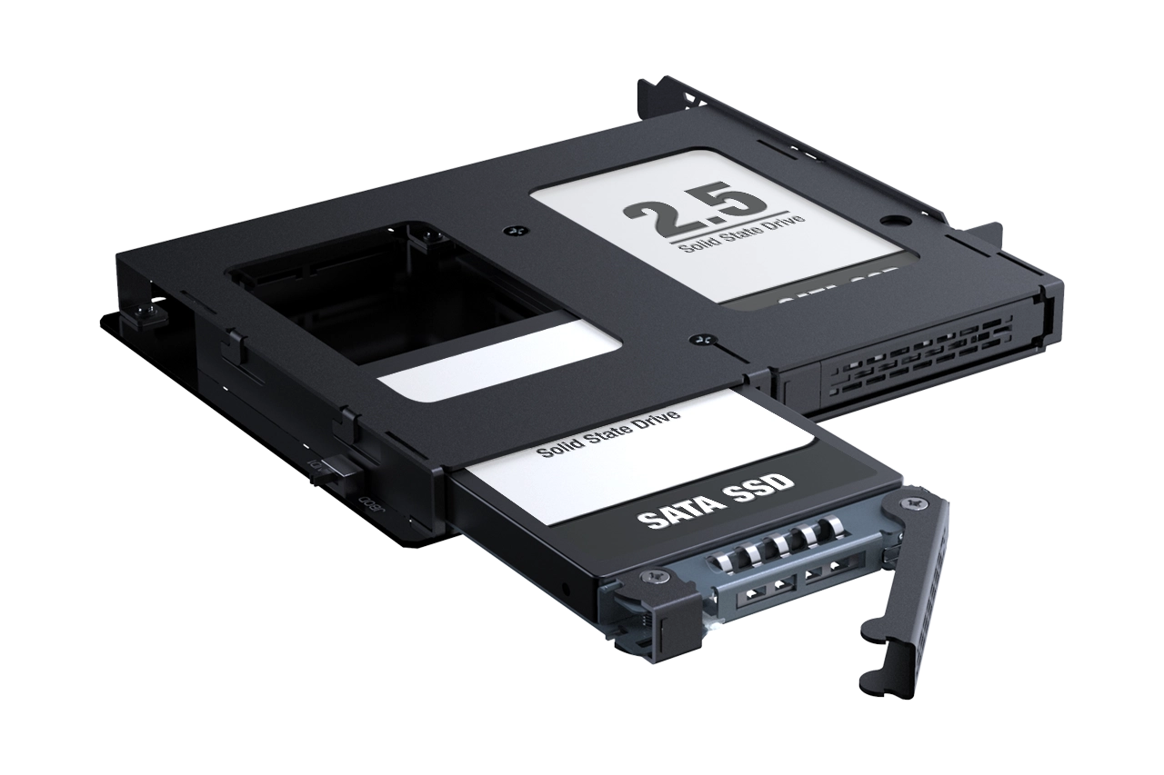 支援 2 × 2.5 吋 SATA SSD/HDD(最高 9.5mm 高度)