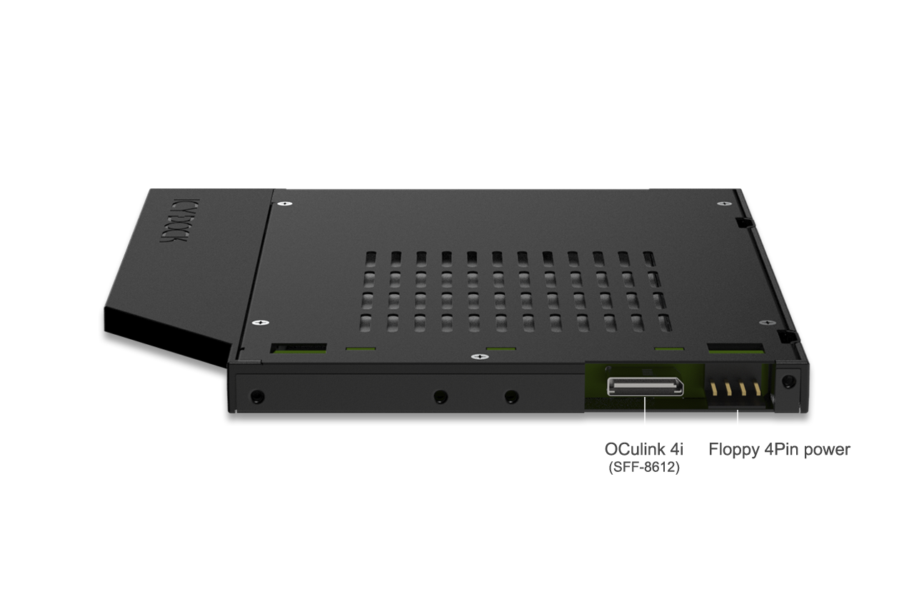 | 主機端介面: | 1 x OCuLink 4i (SFF-8612),符合 SFF-9402 Rev 1.1 pin-out (相容 Tri-mode HBA/RAID 卡) |
