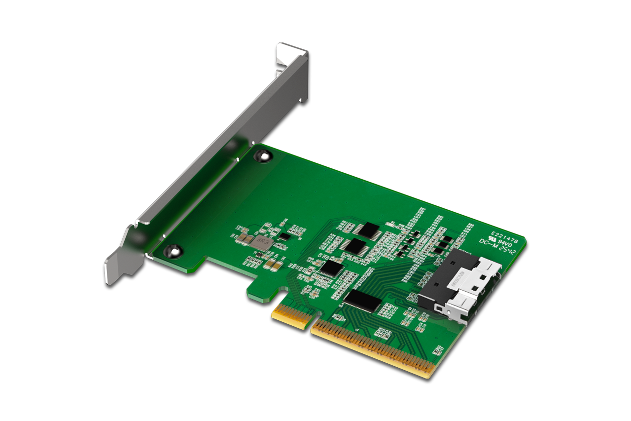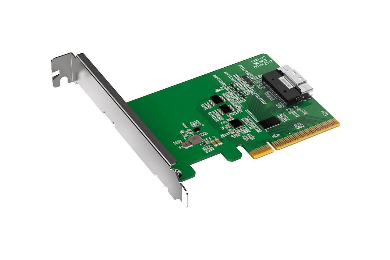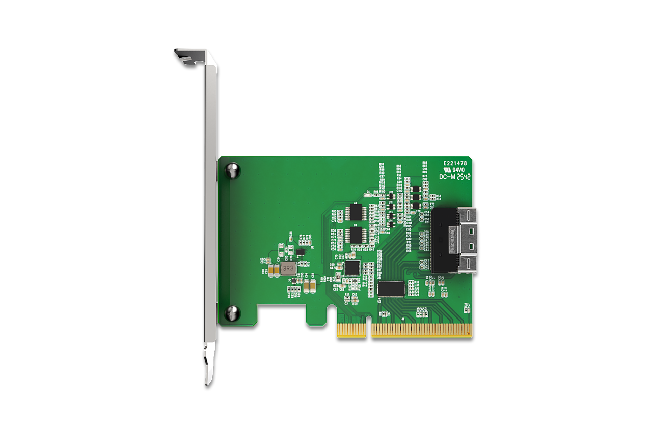| 裝置端介面: | 1 x SlimSAS 8i(SFF-8654),腳位定義符合 SFF-9402 Rev 1.1 (相容 Tri-mode HBA / RAID 卡) |