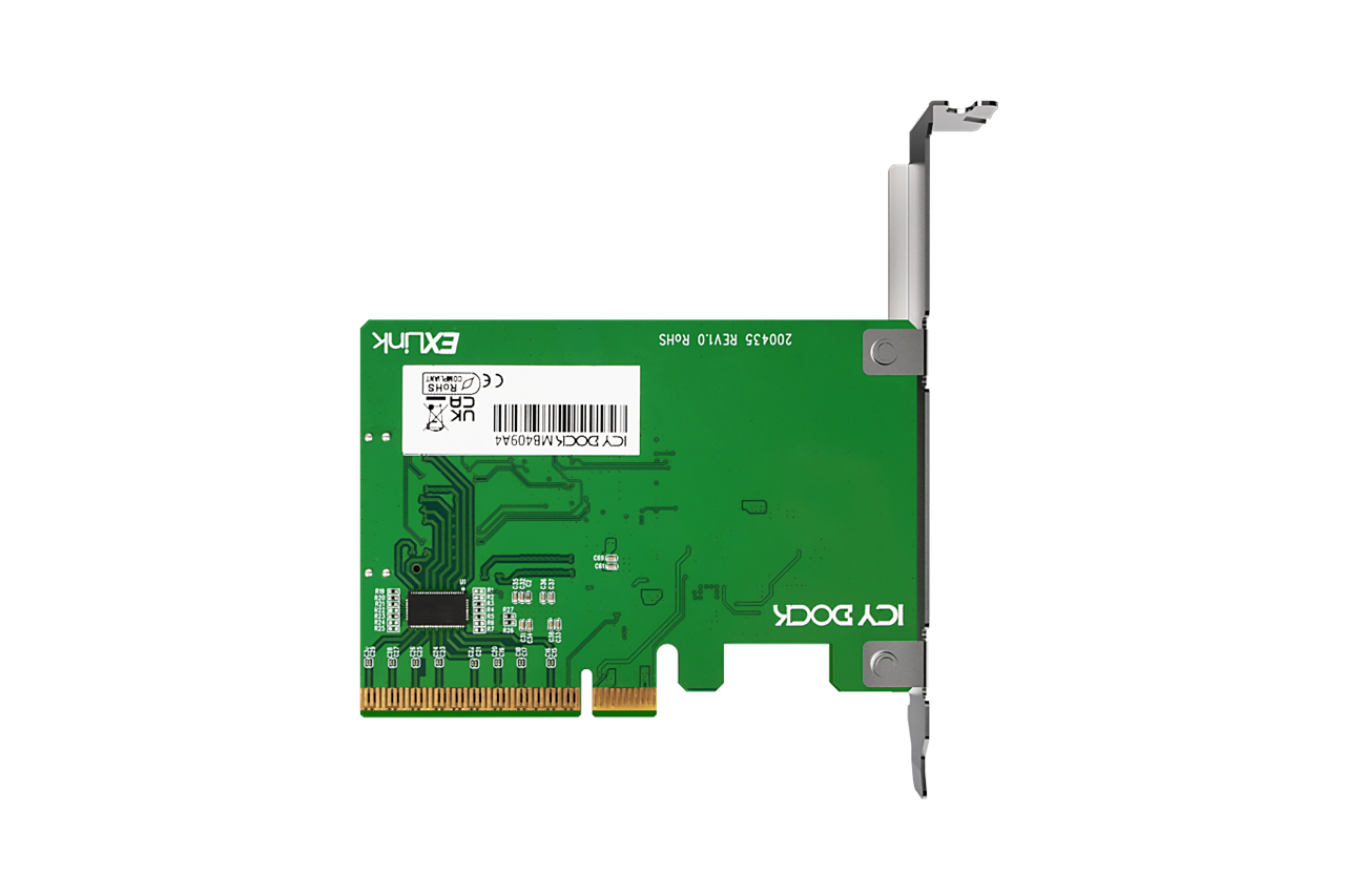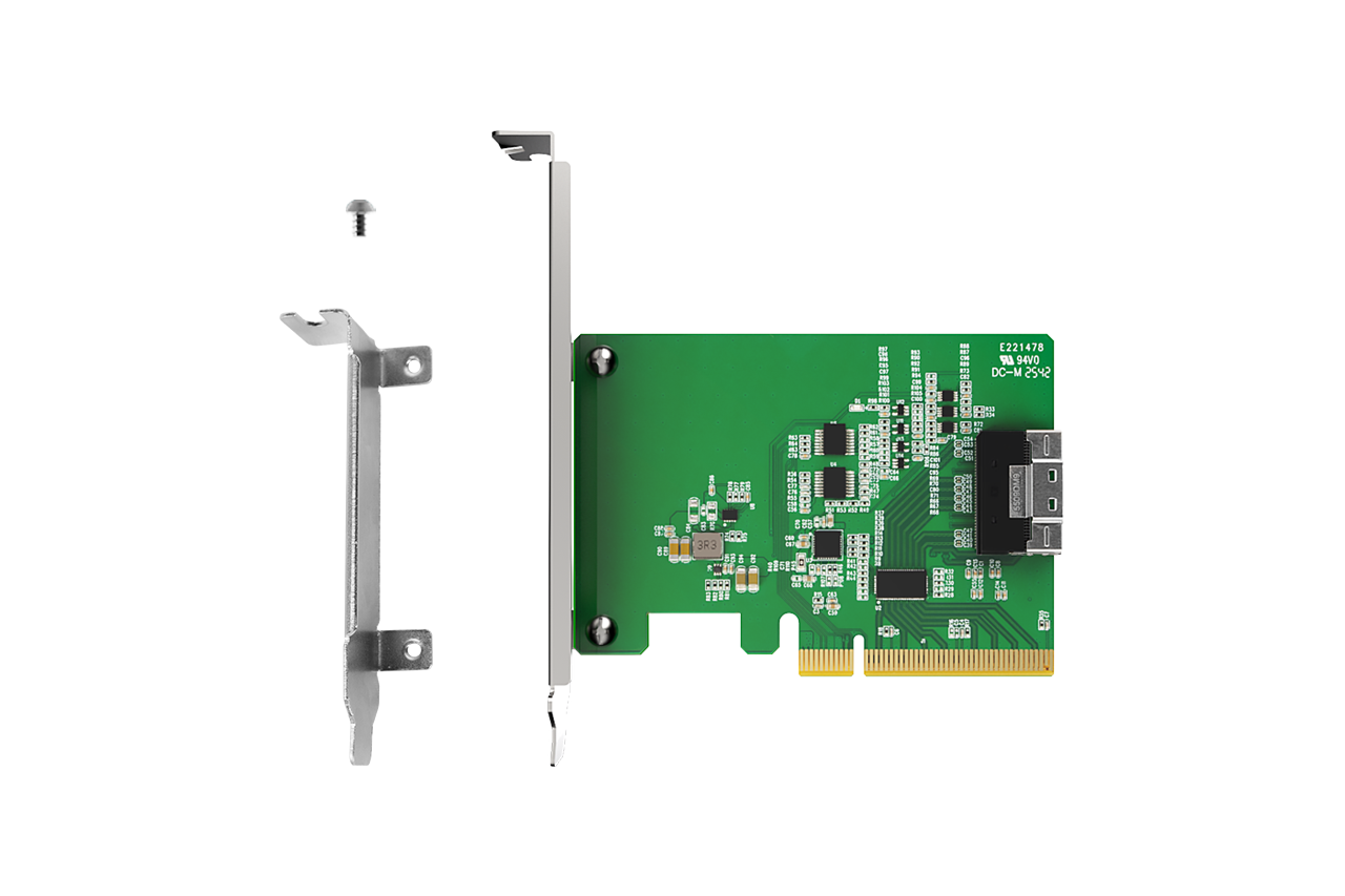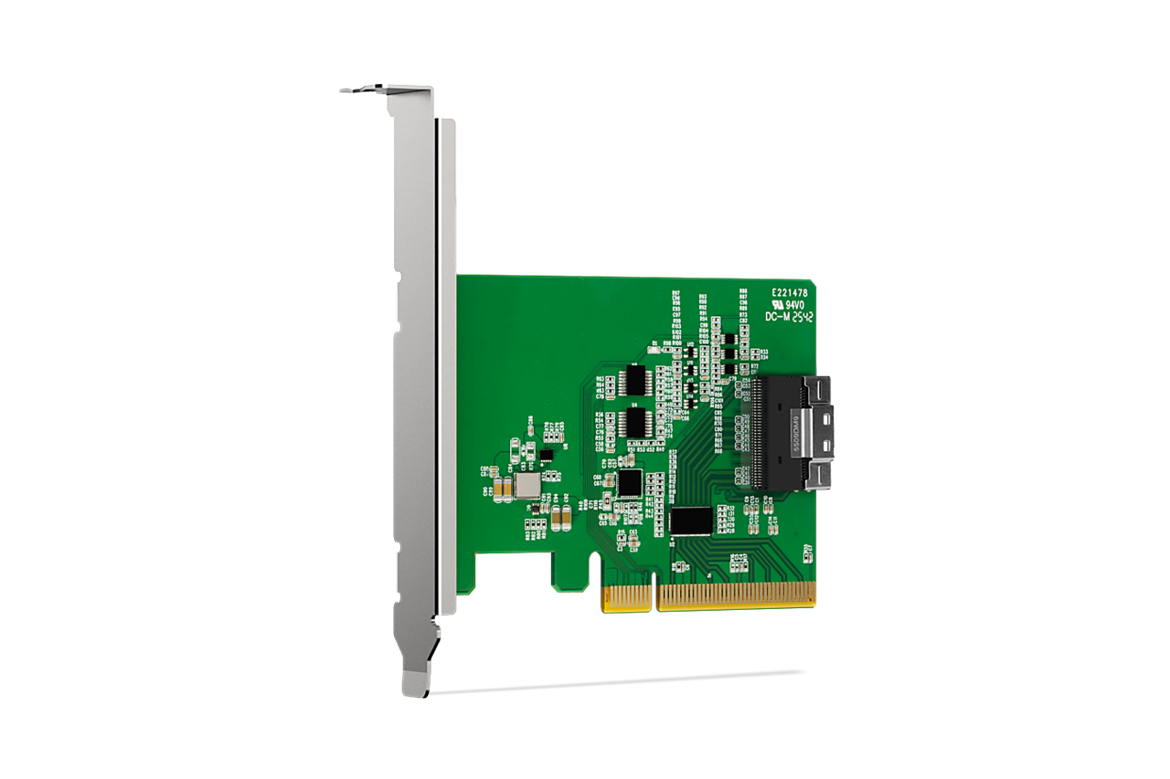 | 裝置端介面: | 1 x SlimSAS 8i(SFF-8654),腳位定義符合 SFF-9402 Rev 1.1 (相容 Tri-mode HBA / RAID 卡) |