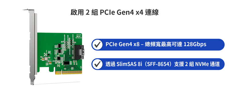 | 傳輸速度: | PCIe 4.0 x8,最高可達 128Gbps |