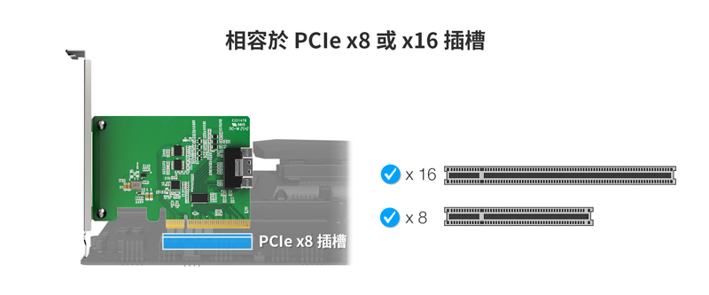 | 支援插槽: | 可搭配主機板上的 x8 / x16 PCIe 2.0 / 3.0 / 4.0 或 5.0 插槽使用 |