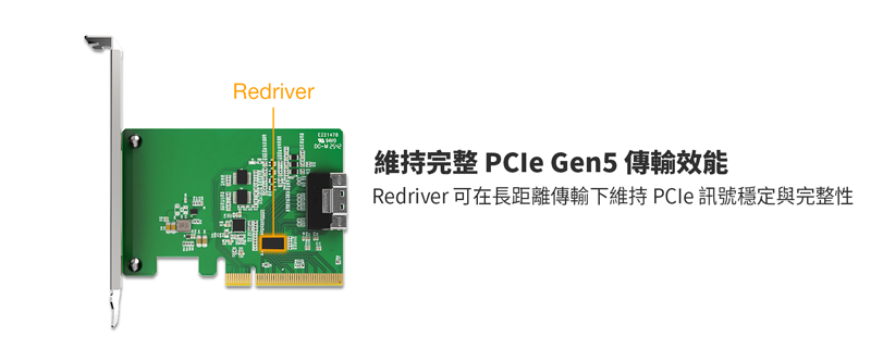 | • | 內建 PCIe Gen4 redriver,可在較長走線與線材環境下提升訊號完整性 |