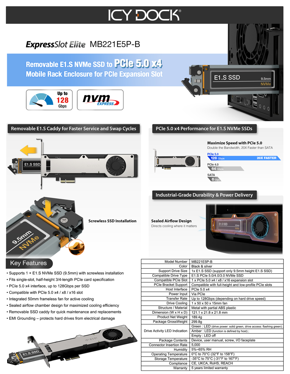 | 相容硬碟類型: | E1.S PCIe 5.0/4.0/3.0 NVMe SSD |