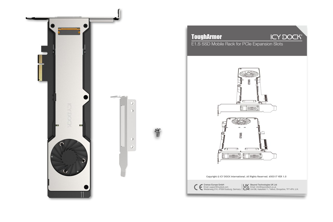 | • | 支援 1 個 E1.S NVMe SSD(9.5mm),免螺絲安裝設計 |