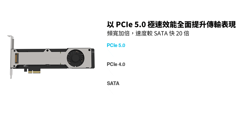 | • | 採用 PCIe 5.0 x4 介面,每顆 SSD 傳輸速度最高可達 128Gbps |